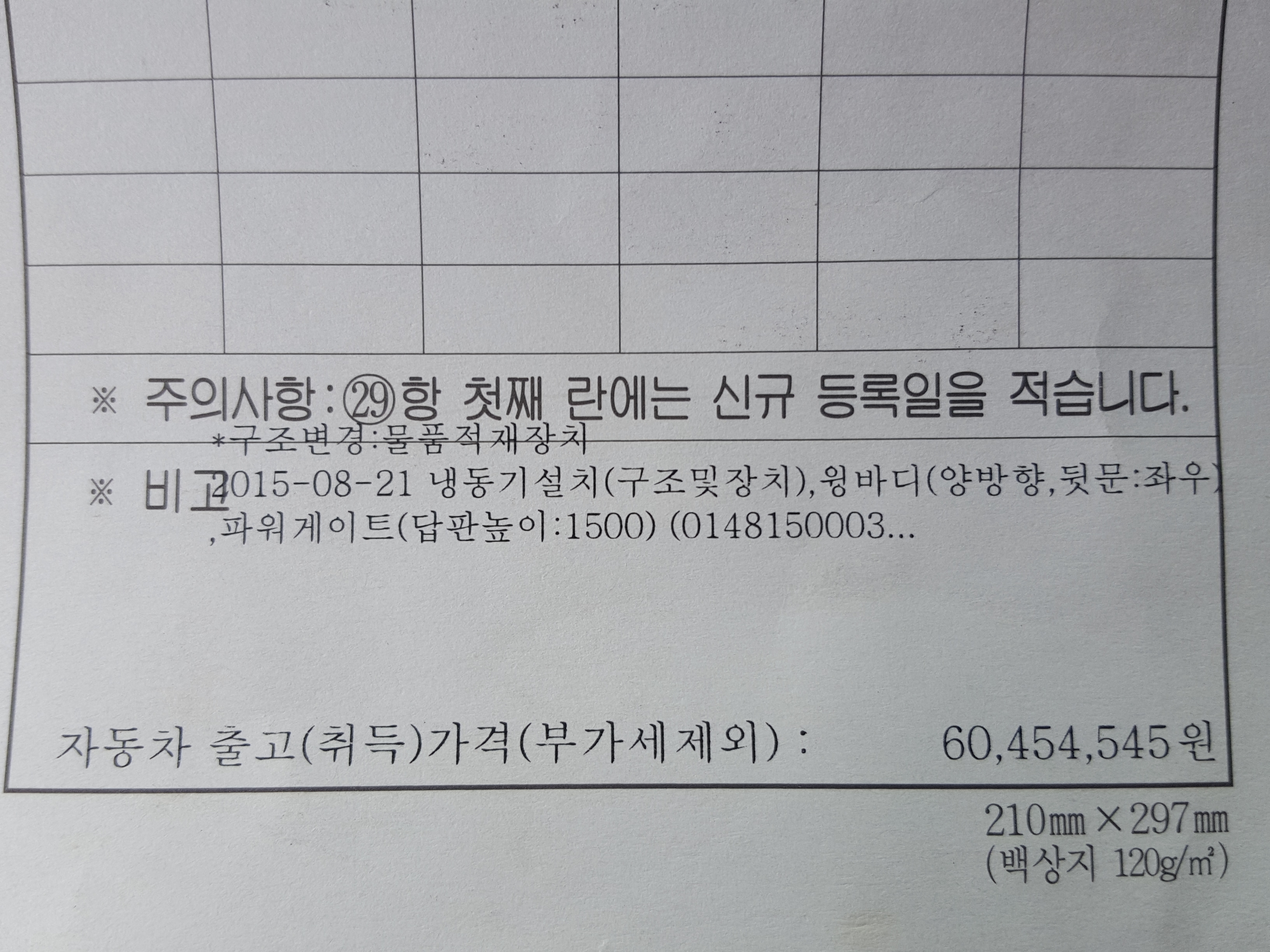 메가트럭 4.5톤 냉장윙바디 차량 팔려고합니다.