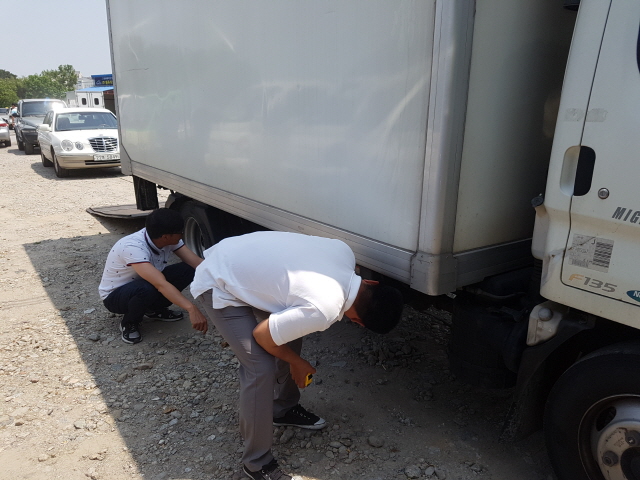 차량의 기능을 체크하고 있습니다. 에어컨은 잘 작동이 되는지?