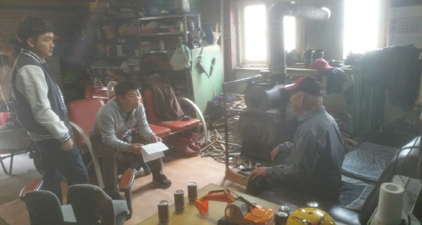어르신과 함께 커피 한잔 하면서, 어떻게 이렇게 좋은 곳으로 정착하게 되었는지? 담소를 나누고 있습니다.